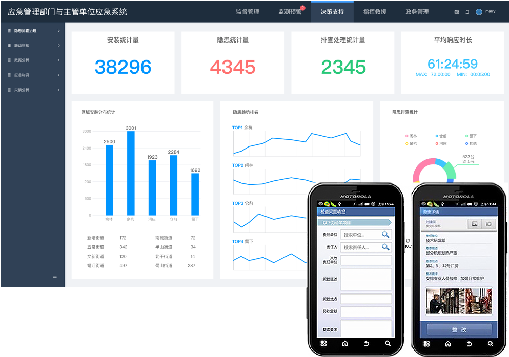 建設目標:實時了解隱患的整體分布和整改進度,為安全生產監管決策提供依據;自動分析隱患數據,對隱患進行分類統計